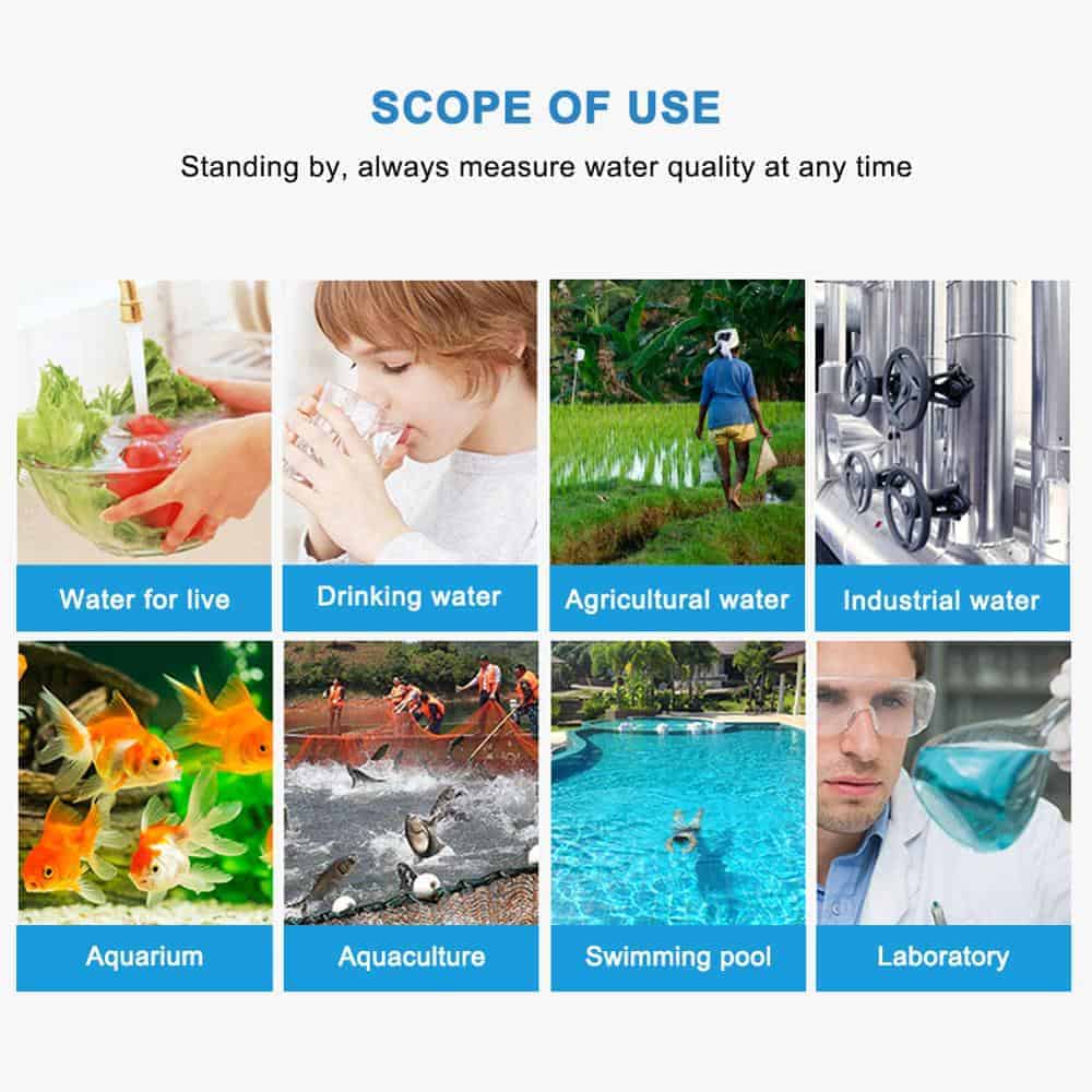 Aplicar en fuentes de agua, cultivo sin suelo, acuarios, hidroponía, laboratorio, spas, agua ambiental, piscinas, sistemas de purificación de agua, etc.