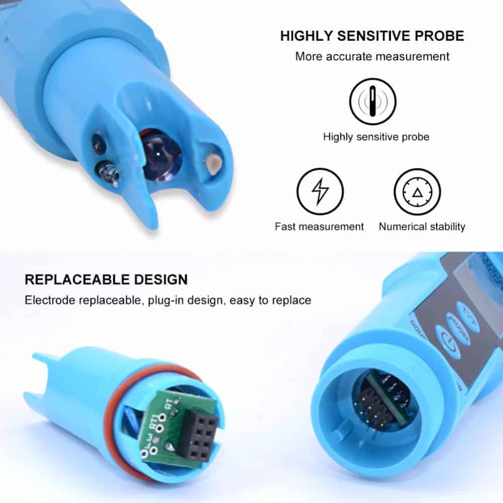 Impermeable IP65 y sonda de sensor reemplazable: la sonda de electrodo se puede reemplazar con un diseño reemplazable para un reemplazo conveniente y rápido.